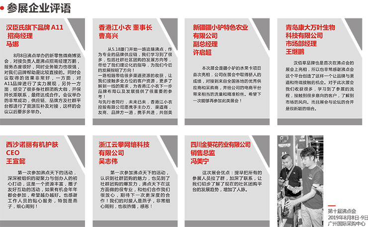 2019年,沸點會設(shè)立全新主題--跟上,就是大機遇。率先引入社群團購理念,力邀名列前茅的團購平臺首登舞臺,用實戰(zhàn)案例,用前瞻的視角分析新零售的市場趨勢及風(fēng)口;力邀著名的財、稅、法律管理專家,解讀中國新零售及電子商務(wù)市場的全新動態(tài)及法律、法規(guī),為企業(yè)指點迷津。三天時間七大板塊活動,輪番上演,現(xiàn)場人氣爆棚,緊扣新零售、社群、團購、微商、網(wǎng)紅帶貨等社會熱點話題。從不同角度為商品運營和銷售渠道提供創(chuàng)新解決方案。