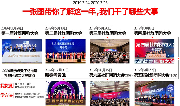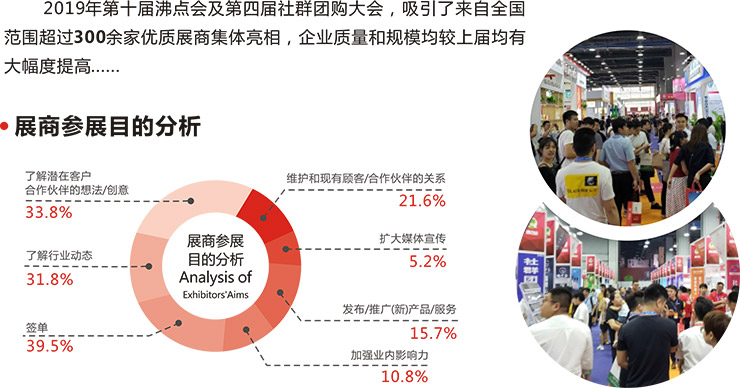 隨著《中華人民共和國電子商務(wù)法》的出臺和實施,中國新零售市場正處于蓬勃發(fā)展階段,預(yù)計今后的數(shù)年仍將保持上揚趨勢;社群團購、微商、社交電商成為中國新零售渠道占領(lǐng)市場的重要因素之一。在這一大趨勢下,第四屆社群團購大會與第十屆沸點會首度以【會+展】模式在2019年達到了空前規(guī)模,于2019年8月8日-9日在廣州國際采購中心召開,深度鏈接沸點天下五年來沉淀的全方位資源。從平臺品牌系統(tǒng)、供應(yīng)鏈系統(tǒng)、運營系統(tǒng)衍生社群團購基本邏輯,串聯(lián)成一完整的社群團購產(chǎn)業(yè)鏈年度盛會。