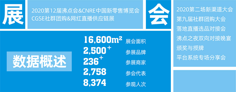 2020年第二屆新渠道大會(huì)、第九屆社群團(tuán)購大會(huì)、第12屆沸點(diǎn)會(huì)CNRE新零售博覽會(huì)于8月8日-9日在杭州國際博覽中心召開,來自全國范圍的品牌方、供應(yīng)鏈、平臺(tái)、新渠道創(chuàng)業(yè)者齊聚杭州,萬人匯聚共同探討新渠道,新機(jī)遇,新增長。