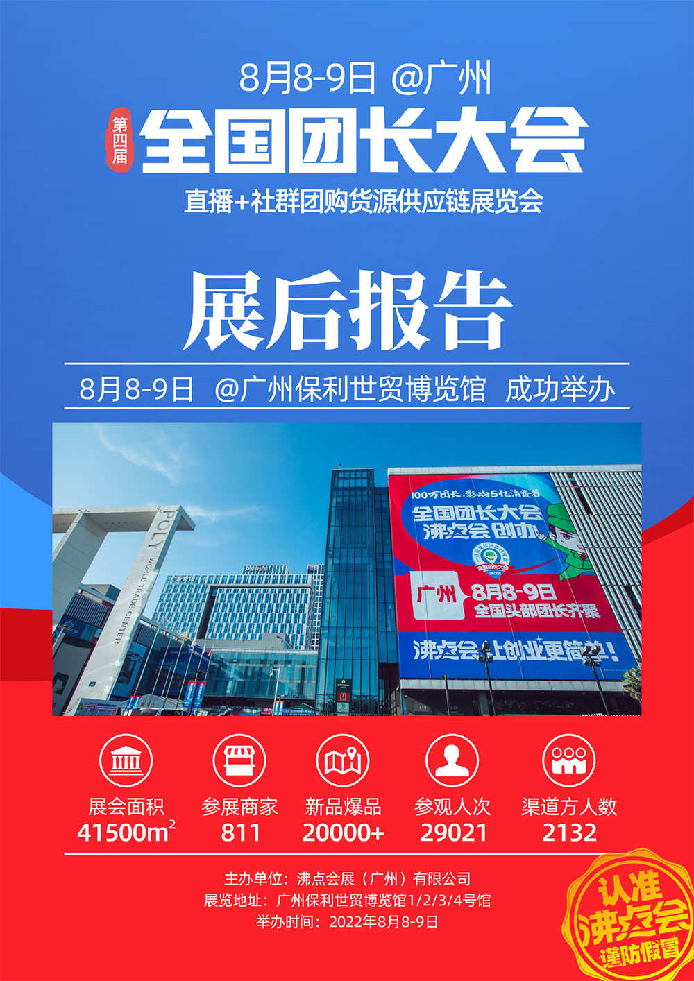 沸點會展(廣州)有限公司主辦的“第17屆沸點會(廣州)供應鏈展、第四屆全國團長大會、社群團購與直播選品會、一件代發貨源對接會、直播+社群團購貨源供應鏈展覽會、新渠道大會/新渠道博覽會、第17屆CNRE中國新零售博覽會”【以上簡稱:供應鏈展】于2022年8月8-9日在廣州保利世貿博覽館1、2、3、4號館成功召開,圓滿落幕。