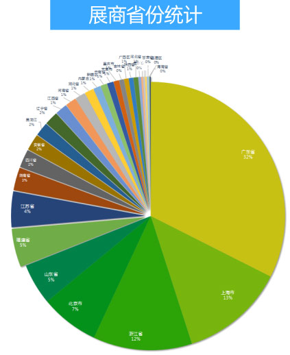 本次參展的企業中,廣東省,上海市,浙江省,北京市,山東省,是參展企業數量排名前五名的省市。