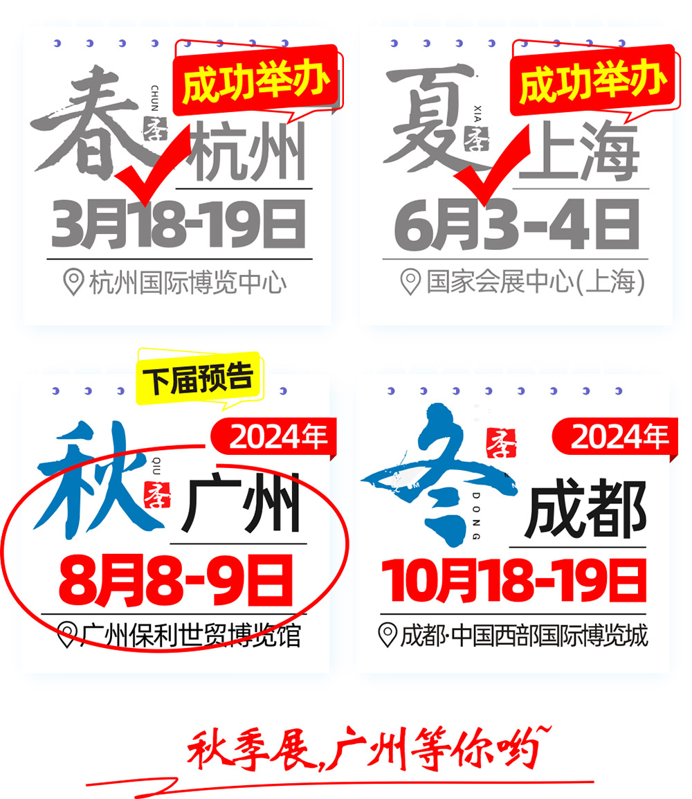 從本屆沸點會開始,沸點會推出一年四展,即春季爆品展,夏季爆品展,秋季爆品展,冬季爆品展,針對私域渠道選品對接合作快的特點,方便大家快速選擇產品,快速決策合作。