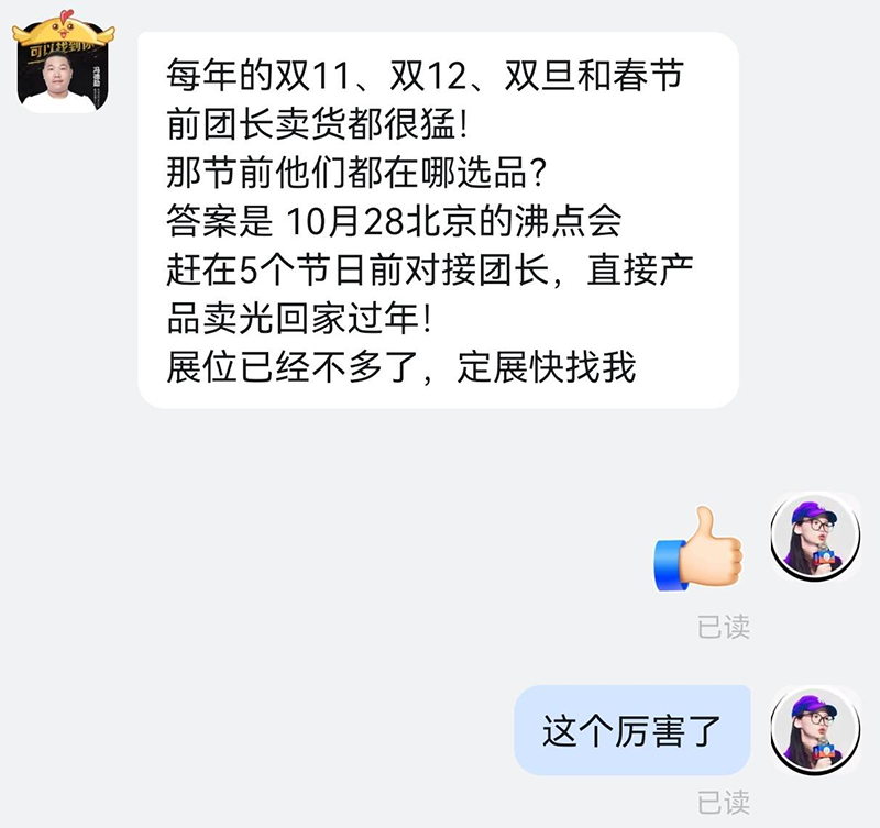 既然渠道把10月北京沸點會當成年貨節選品大會,我們得盡快招募供貨商呀。