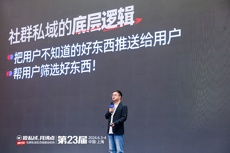 借私域:跟有私域的人合作,用別人的私域,賣自己的產(chǎn)品;只要有好的產(chǎn)品,有負責的私域?qū)尤,再來參加沸點會這樣的活動,與有私域的頭部渠道鏈接上,就可以了。