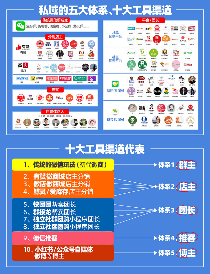 這個里面不僅有五大體系,還有每個頭部渠道的名單。